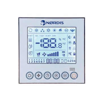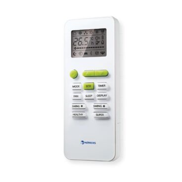 This NØRDIS VRF wall-mounted indoor unit features an elegant ultra-thin design, provides stable airflow with an automatically adjusting fan motor, offers ultra-wide and long-range air distribution, and ensures effective air purification with built-in coarse and PP filters plus an optional silver ion module to remove dust, odors, and bacteria. It is easy to maintain thanks to its removable horizontal baffle, making it ideal for public and commercial spaces, and it comes with a remote controller for convenient operation.